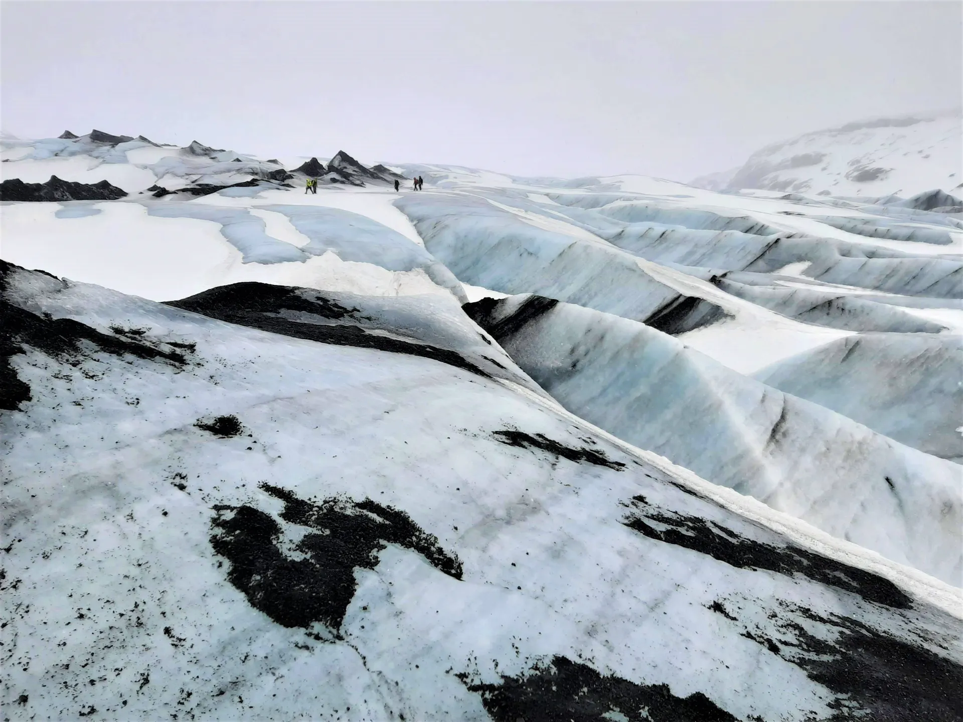 Under gletsjersikkerhedskurset på den islandske gletsjer Sólheimajökull træner forskerne bl.a. at vælge den sikreste rute på isen, så eventuelle gletsjerspalter undgås. Foto: Paul Smeets: Utrecht University