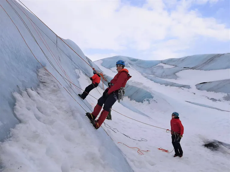 Arbejdet på Indlandsisen kræver kendskab til risici forbundet med at bevæge sig rundt på gletsjere. På gletsjersikkerhedskurset lærer deltagerne blandt andet at aflæse terrænet, spotte eventuelle gletsjerspalter og – i alleryderste konsekvens – at kunne redde sig selv og hinanden op fra et fald i en spalte. Noget, der heldigvis er ekstremt sjældent, fortæller Signe Bech Andersen.
