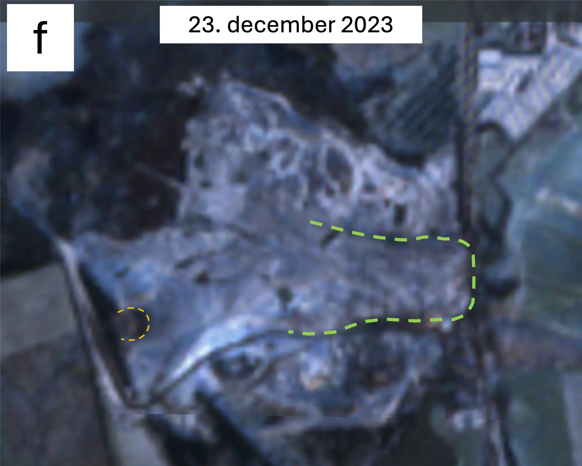 - Gennem sommeren og efteråret 2023 er der stor skredaktivitet i den centrale del af deponiet. I august eller september begraves en vej, en lagerhal og andre bygninger i jordskreddet. I oktober 2023 befæstes en vej til aflæsningspladserne på kanten af den tidligere lergrav med beton, samtidigt med at jordskreddets front i den centrale del af deponiet bevæger sig længere mod øst.