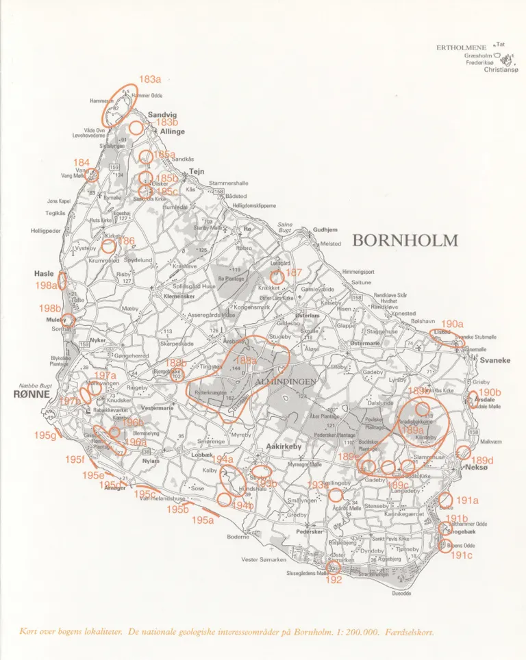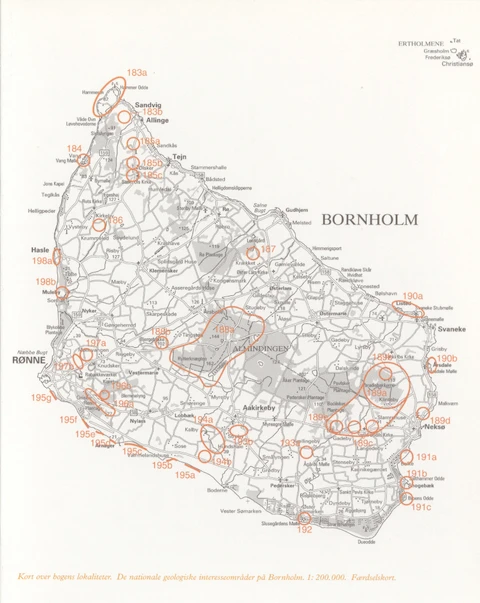 På Bornholm ligger der 16 af de oprindeligt udpegede Nationale Geologiske Interesseområder. Inden for disse 16 områder er der en række underlokaliteter nummererede med a, b, osv. Det vil sige, at der faktisk er 38 beskrevne lokaliteter på Bornholm. I disse områder ses de mest instruktive resultater af de geologiske processer, der gennem millioner af år har skabt Danmark, og som stadig er en vigtig del af vores foranderlige land. Når landet forandrer sig gennem tiden, dukker der ny viden op om nye lokaliteter af national interesse, ligesom eksisterende lokaliteter vil miste deres betydning, fordi vigtige lag eller hele lokaliteter forsvinder.