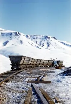 - 'Den Sorte Engel' bly-zinkminen var forbundet med minebyen på fjordens modsatte side via en 1,7 km lang tovbane.