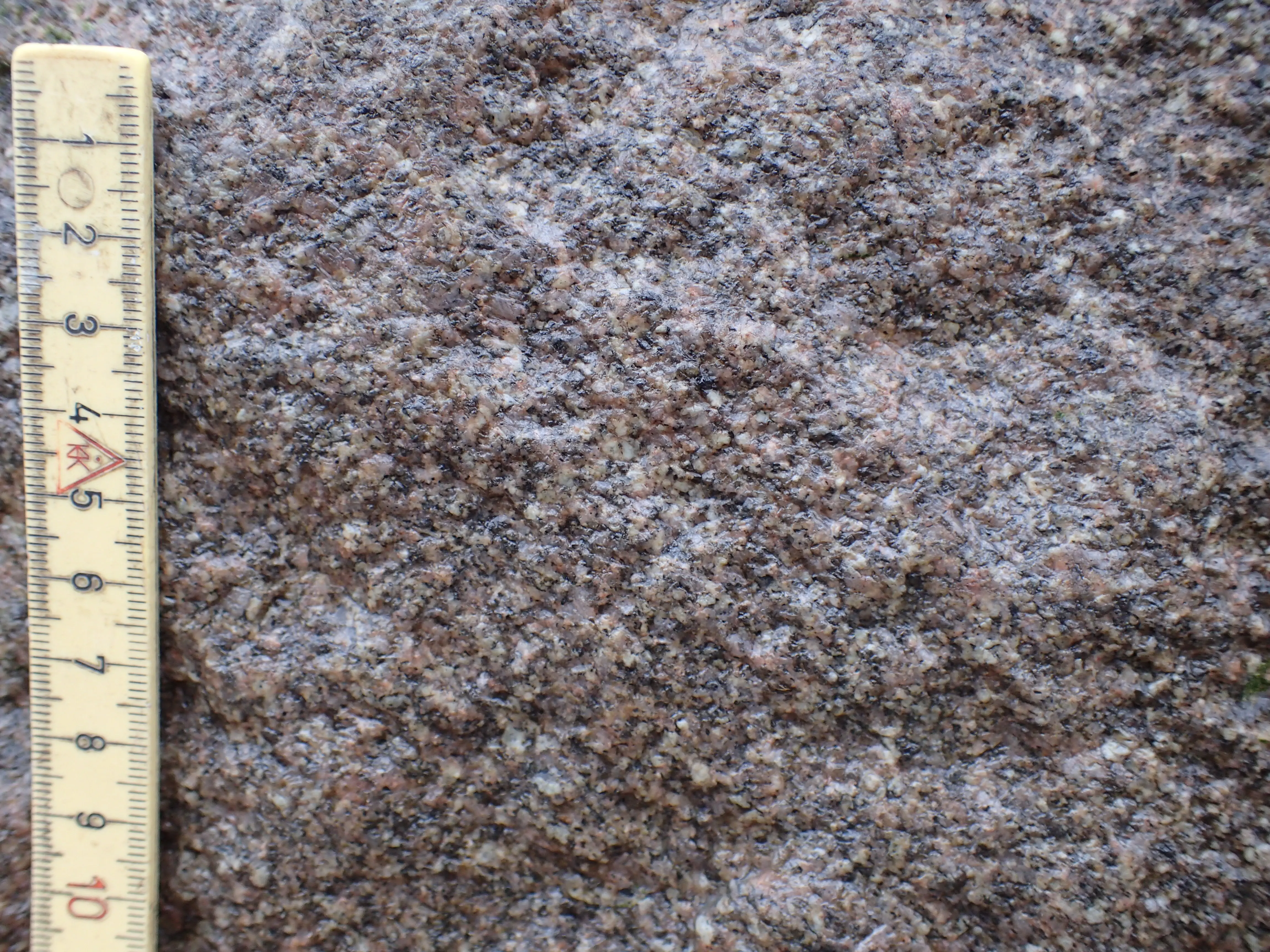 På stenens sydside og på oversiden findes mere grovkornede årer. De kan minde om gnejs, men de er nærmere udtryk for de sidste mineraler, der udkrystalliserede fra smelten. Mineralerne er dog de samme: røgfarvet kvarts, rødlig kalifeldspat, hvidgul plagioklas og biotit.