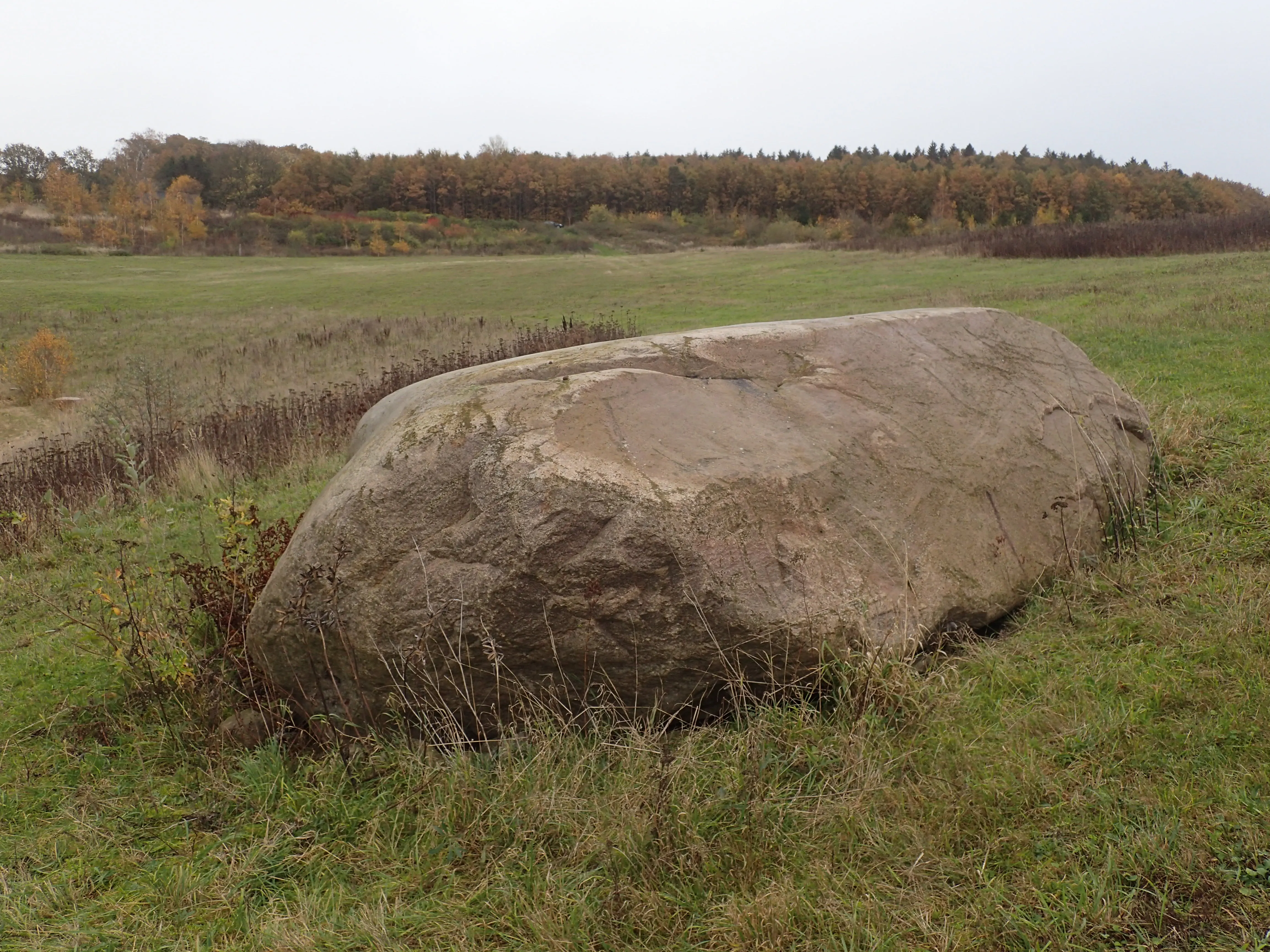 Den lave kæmpestens afrundede form springer i øjnene. Tydelige vandrette skurestriber ses på stenens nordside ned mod søen. Skurestriber forløber desuden parallelt med stenens længdeakse hen over stenens brede ryg. Det gælder for både store og små sten, at deres længste led ofte orienteres parallelt med isbevægelsesretningen, så stenene yder mindst modstand mod isens pres. De to sæt skurestriber står vinkelret på hinanden, hvilket må betyde, at stenen på et tidspunkt har ændret orientering i forhold til indlandsisens bevægelse.