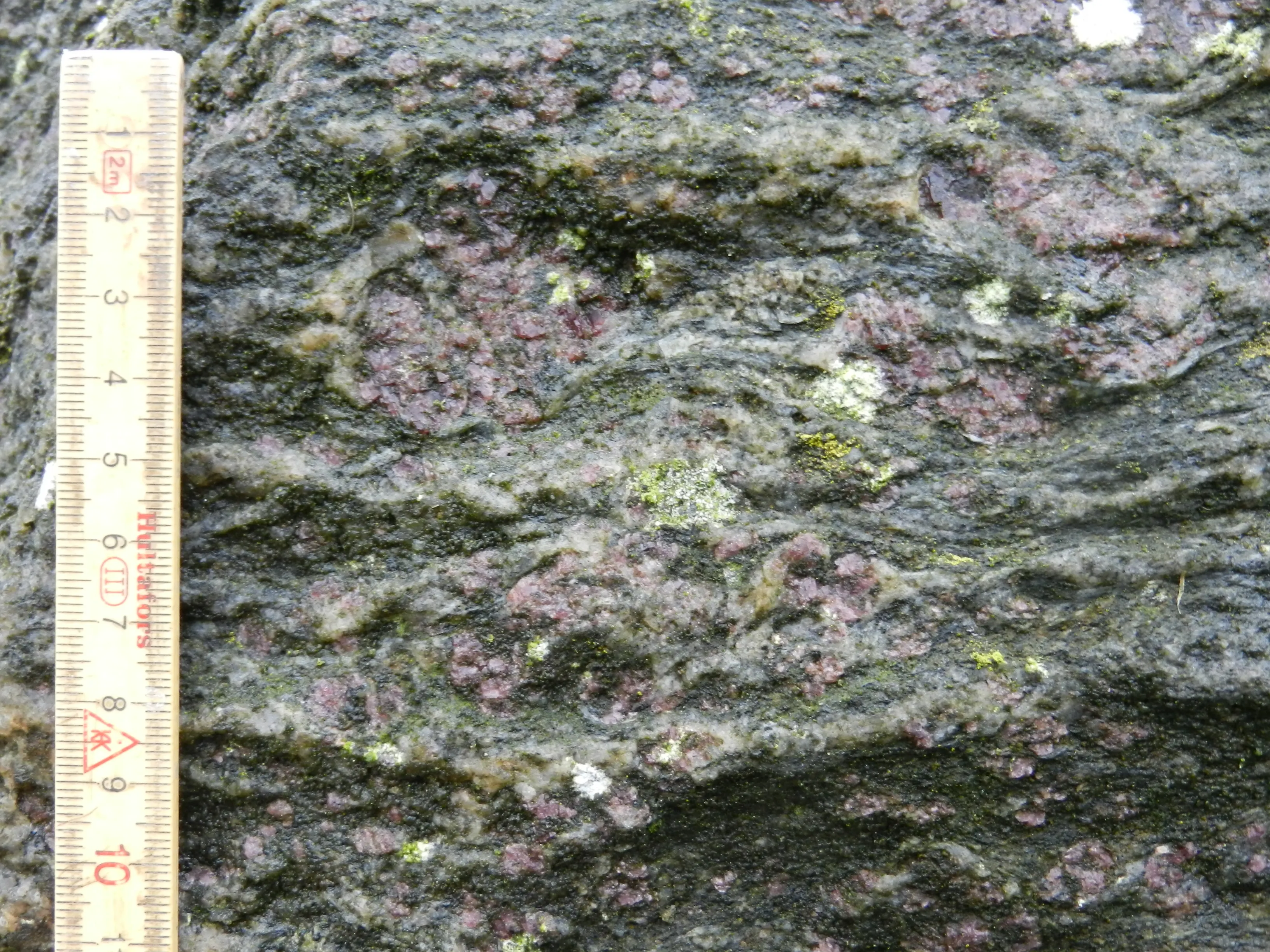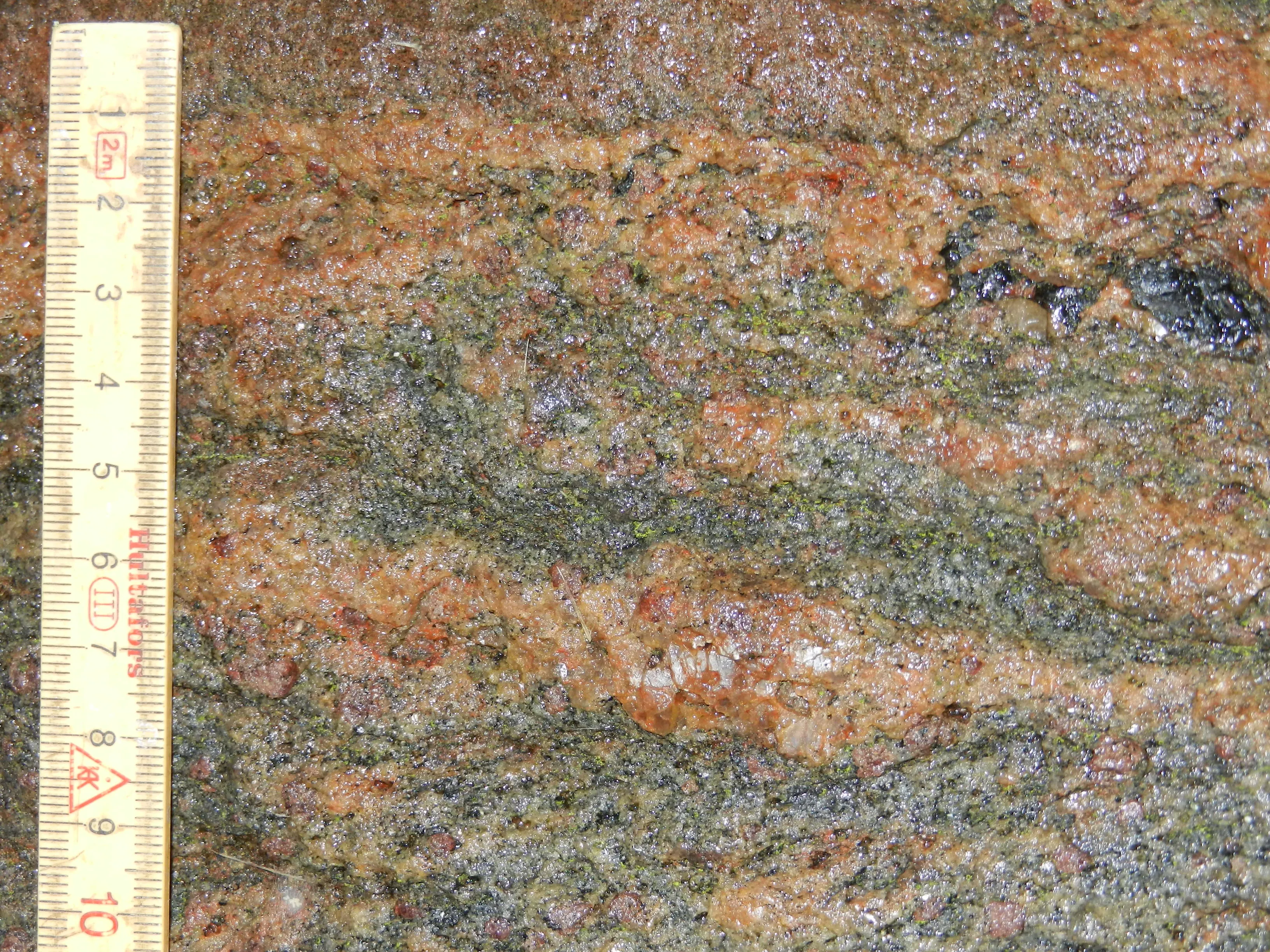 Granatførende migmatitisk gnejs ser du også hos Statoilstenen ved Kalundborg, Lommestenen i Isefjord og Lundestenen på Lolland.