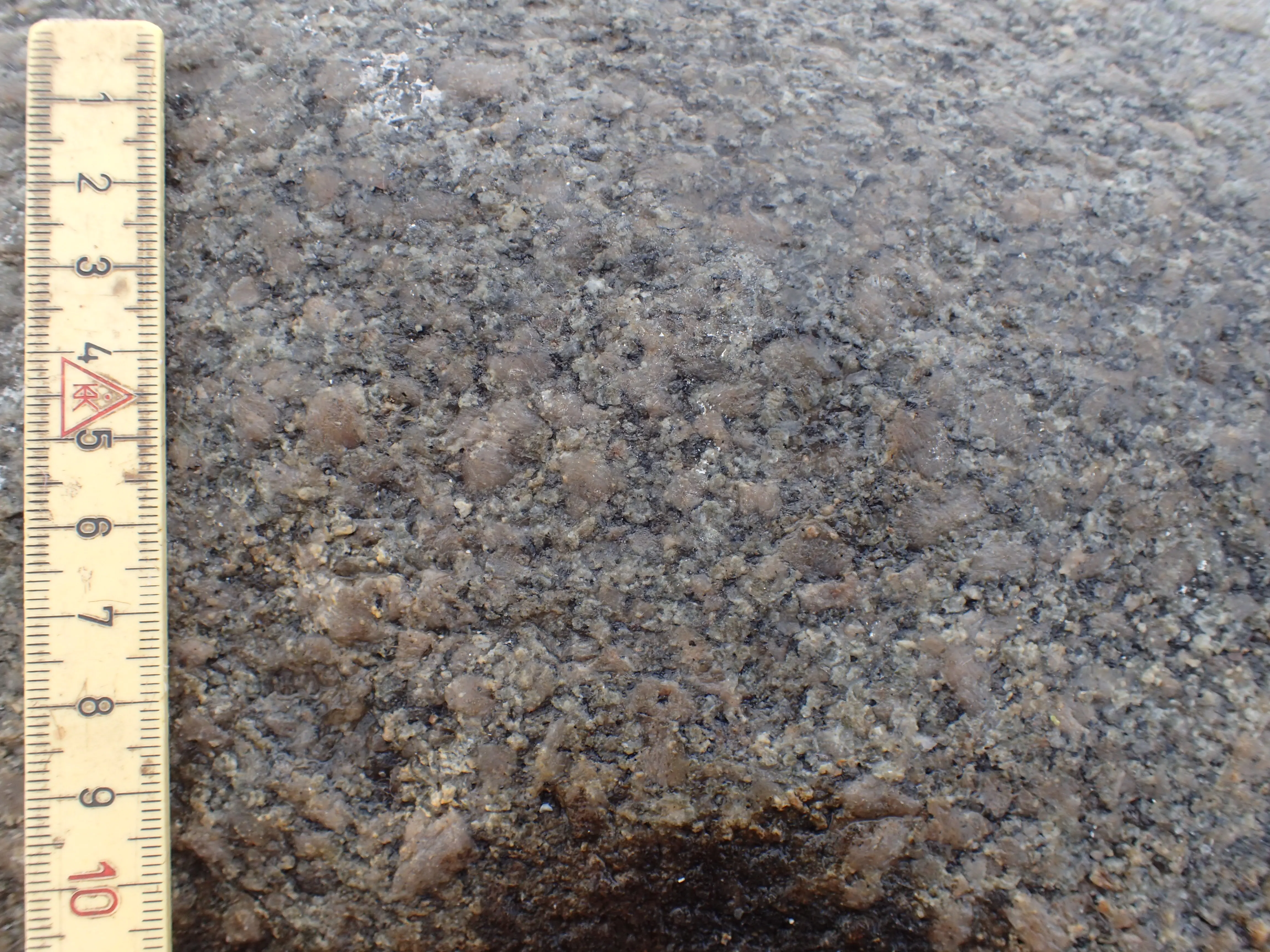 Bredestenen består af mellemkornet homogen granit uden antydning af foliation. Ej heller bånd eller inklusioner forstyrrer det ensartede udtryk. Stenen er afrundet med få ridser og revner. Hovedbestanddelen er rødgrå kalifeldspat med korn, der i enkelte tilfælde når størrelser over 5 mm. Hvidgul plagioklas og grå kvarts optræder som korn et par millimeter store. Herimellem ses sorte mineraler, der sandsynligvis er biotit.