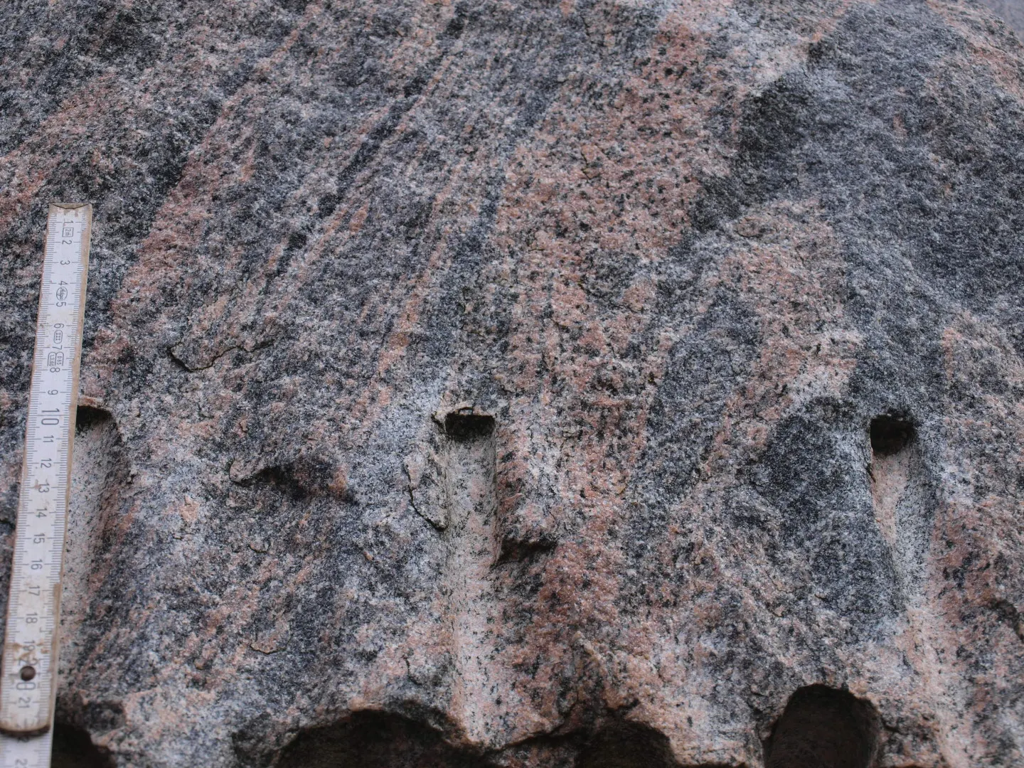 Bro består af Halmstad-gnejs hentet i et stenbrud i svenske Halland nær Halmstad. Halmstad ligger i Sydvestsveriges højmetamorfe region. Bjergarterne i regionen er dannet under særligt højt tryk, der opstod, da to kontinenter stødte sammen. Trykpåvirkningen skete i to omgange: For 1,4 milliarder år siden og igen for 900 millioner år siden. Blankslebne partier på stenen betyder, at det er meget nemt at se gnejsen med sine karakteristiske bånd og folder i rød og sort. De røde farver kommer fra kalifeldspat og fine krystaller af kvarts. De mørke bånd består hovedsagelig af glimmermineralet biotit, men det skulle også være muligt at finde hornblende samt magnetit, der er magnetisk.