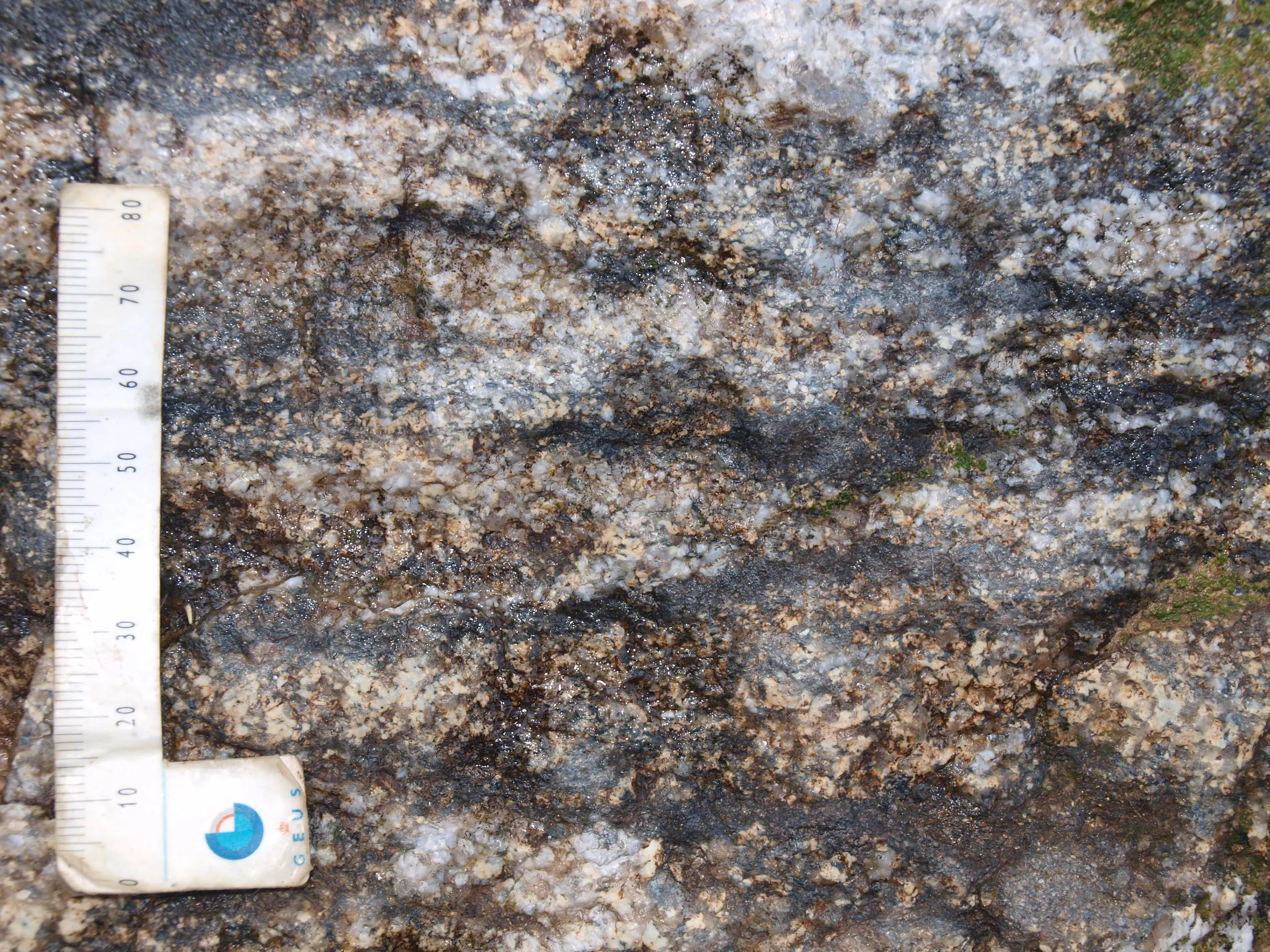 Dammestenens geologiske historie begynder dybt i jordskorpen, hvor smeltet granitisk stenmasse udfyldte i et magmakammer. Bjergarten, der omsluttede magmakammeret, bestod af den mørke bjergart amfibolit, hvorfra stumper og splinter dryssede og blev indblandet i den flydende magma lidt som rosiner æltes ind i en bolledej. Afkøling førte til, at en lys rødliggrå mellemkornet granit med mørke inklusioner langsomt blev udkrystalliserer dybt i undergrunden.