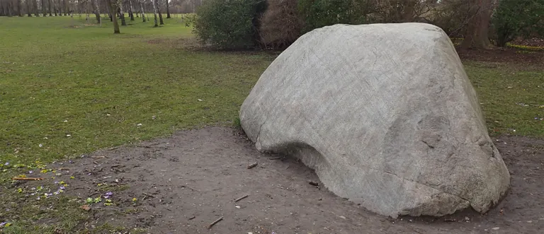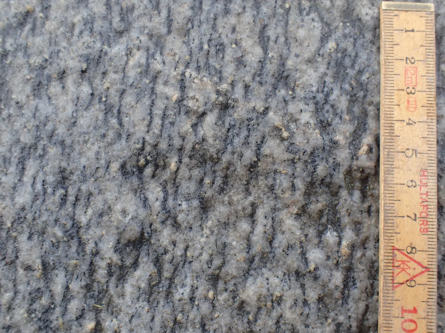Betragter du Den Svenske Sten helt tæt på, åbenbares en omtrent lodret stribning – eller foliation, som geologerne kalder det. Stenens mineraler har fælles orientering og ses som sorte og hvide striber. Ensretningen opstod under højt tryk dybt i jordskorpen. Udgangsbjergarten har muligvis været en granit, da Valbyparkens kæmpesten ligesom en granit består af mineralerne feldspat og kvarts i lyse farver isprængt mørke mineraler. De mørke mineraler ses som korte punkterede slirer. Det høje tryk har omdannet granittens puslespilsmønster til en sliret gnejs.