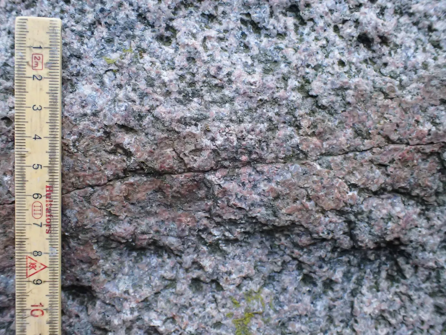 To forskellige strukturer tiltrækker sig opmærksomhed i den ellers homogene granit.