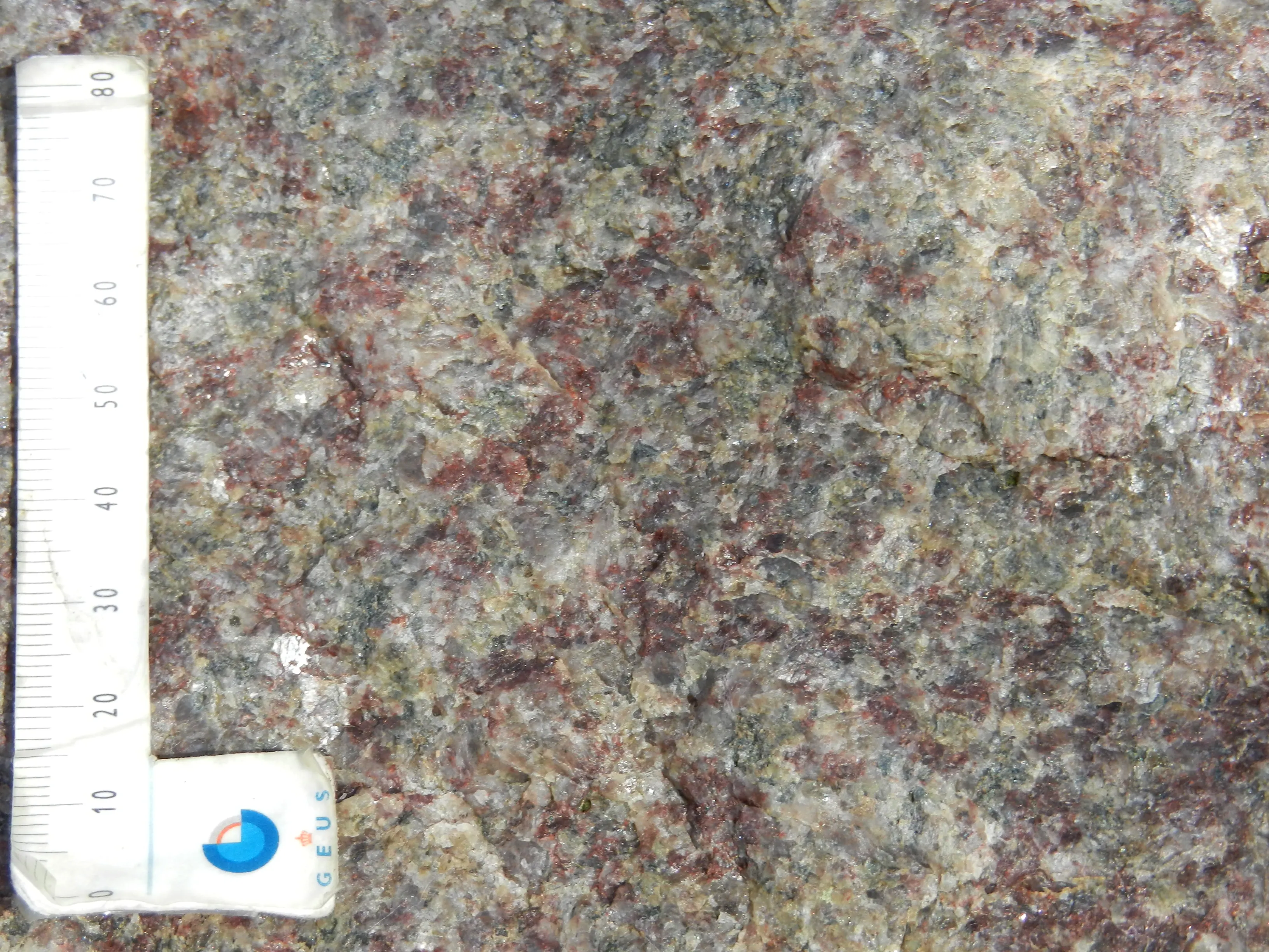 I.C. Møller Stenen består af en homogen, massiv, enskornet og grovkornet bjergart, der er rødspættet med rødvinsrøde plamager 1-2 cm store. Ved nærsyn med lup iagttages to feldspatter: en vinrød, stedvis semitransparent feldspat, der ligner granat, og dels en bleg grågrøn feldspat. Grå kvarts findes også. Dermed kan bjergarten klassificeres som en granit.