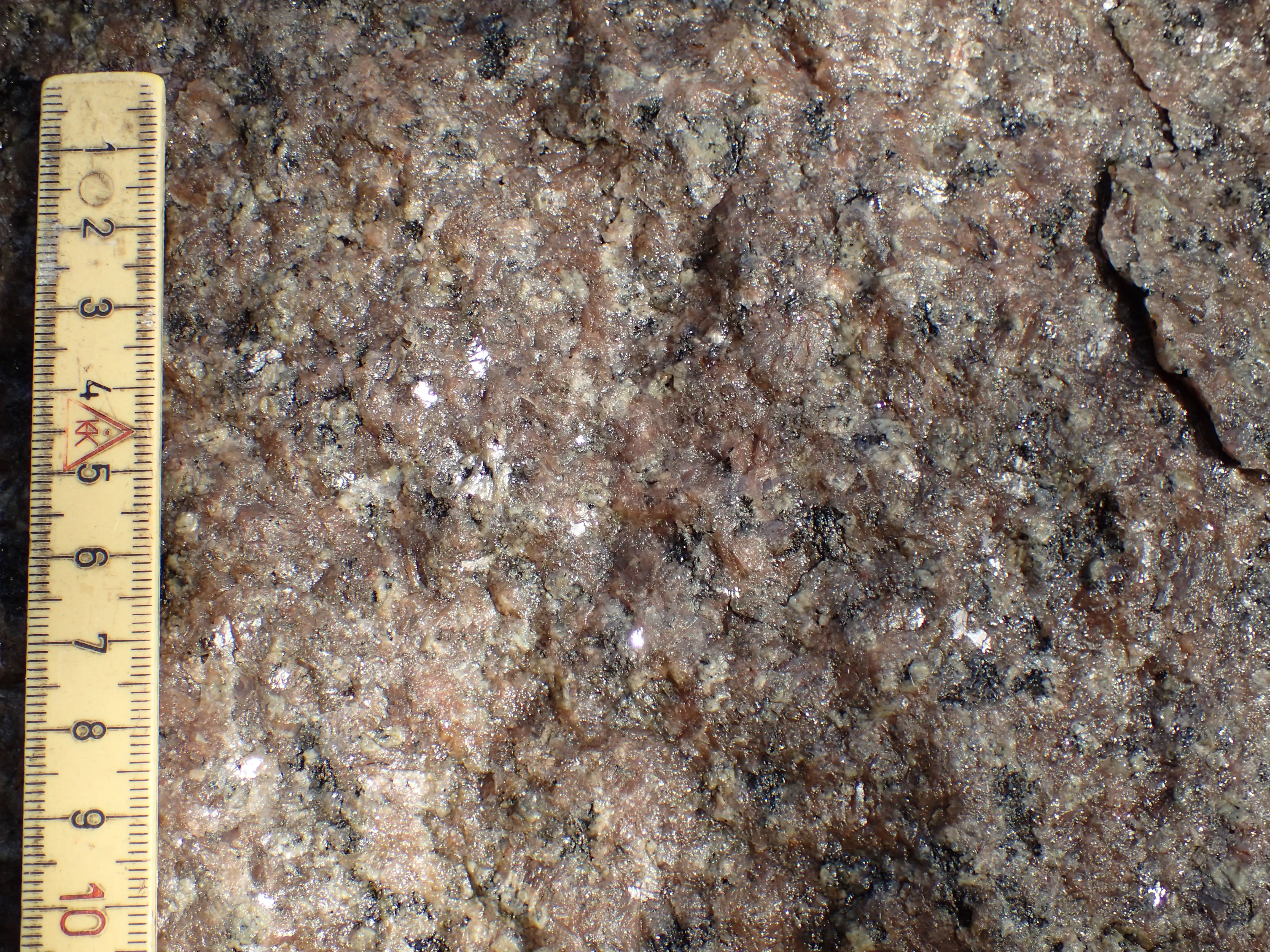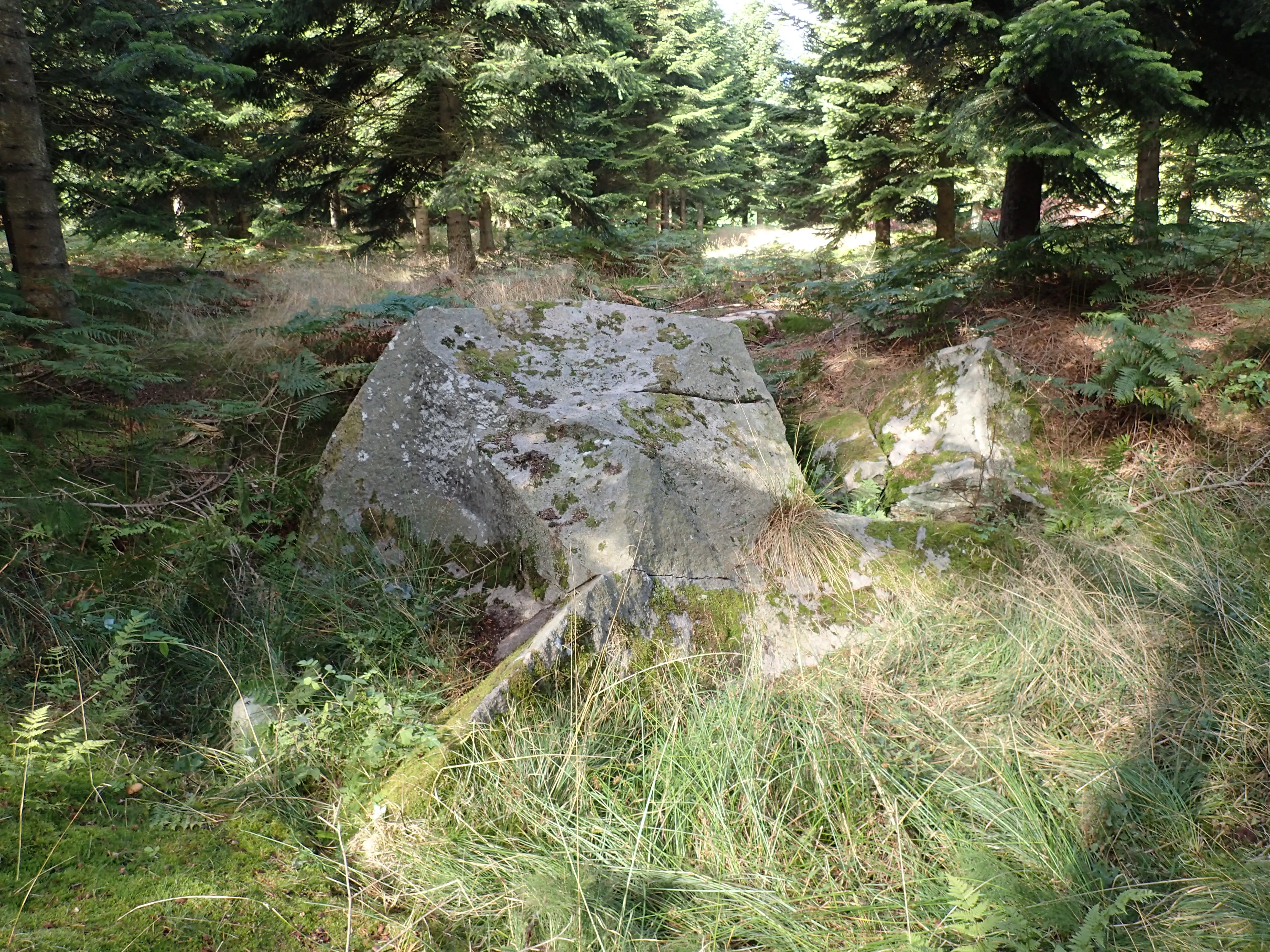 I en meterstor sten ved siden af, ses en hugget rille, og kilen sidder stadig tilbage i den dannebrogsfarvede rød- og hvidprikkede granit.