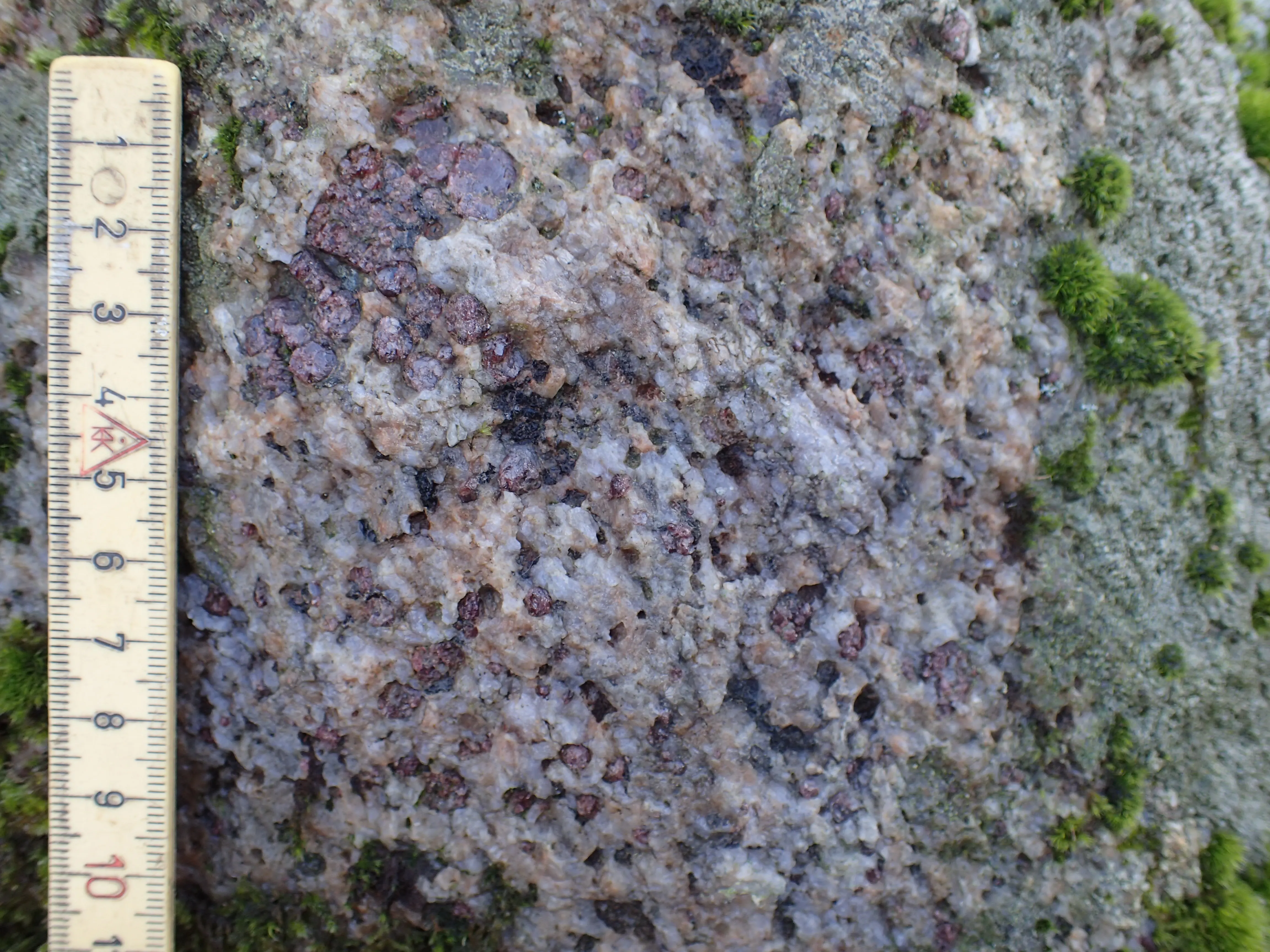 Granatførende gnejs ser du også i Statoilstenen ved Kalundborg, Lommestenen i Isefjord og Lundestenen på Lolland.