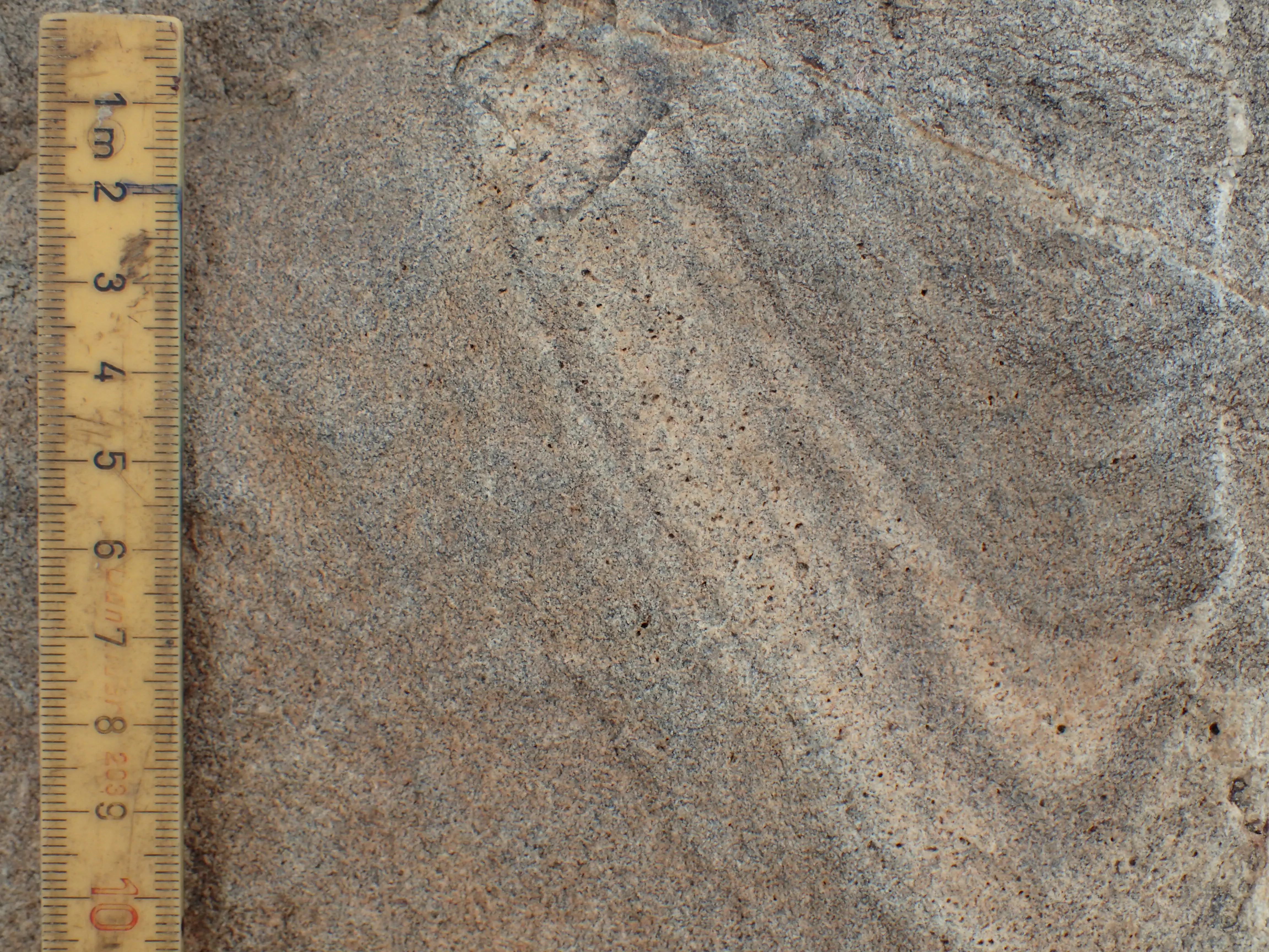 Et enkelt sted ses en såkaldt ptygmatisk fold, der snor sig på tværs af stribningen lige omkring vandlinjen over og under vandoverflade. En åre, der skærer på tværs af foliationen (gnejsens striber), kaldes en ptygmatisk fold efter det græske ord ptygma, der betyder foldet. I Blå Sten på Kringelrøn, Banstenen ved Læsøs nordkyst og i Offerstenen i Østjylland ses også ptygmatiske årer.