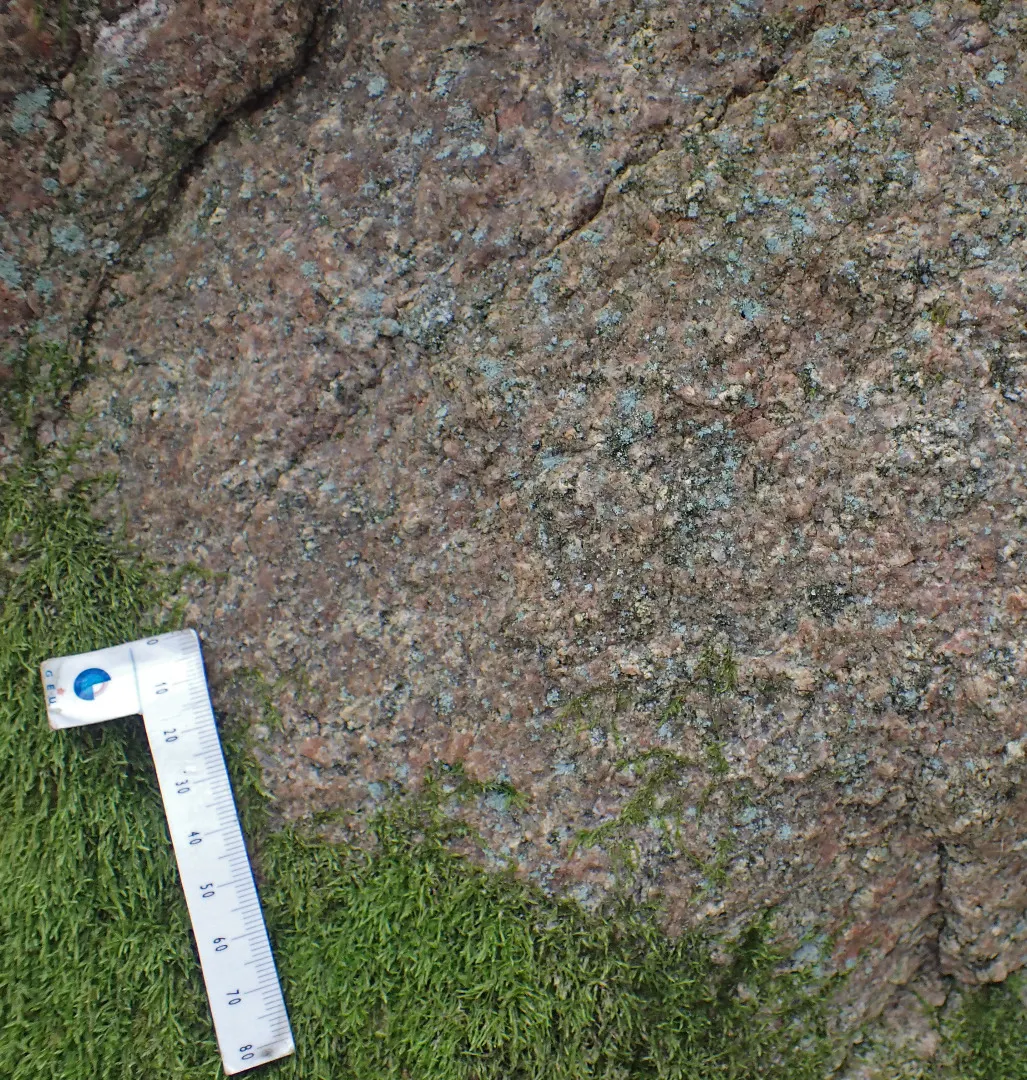 Orestenen består af homogen rødlig mellemkornet granit, der hovedsagelig får sin farve fra rød kalifeldspat. Desuden hvid plagioklas og blanke kvartskorn. Sorte mineraler findes samlet i runde, centimeterstore pletter.