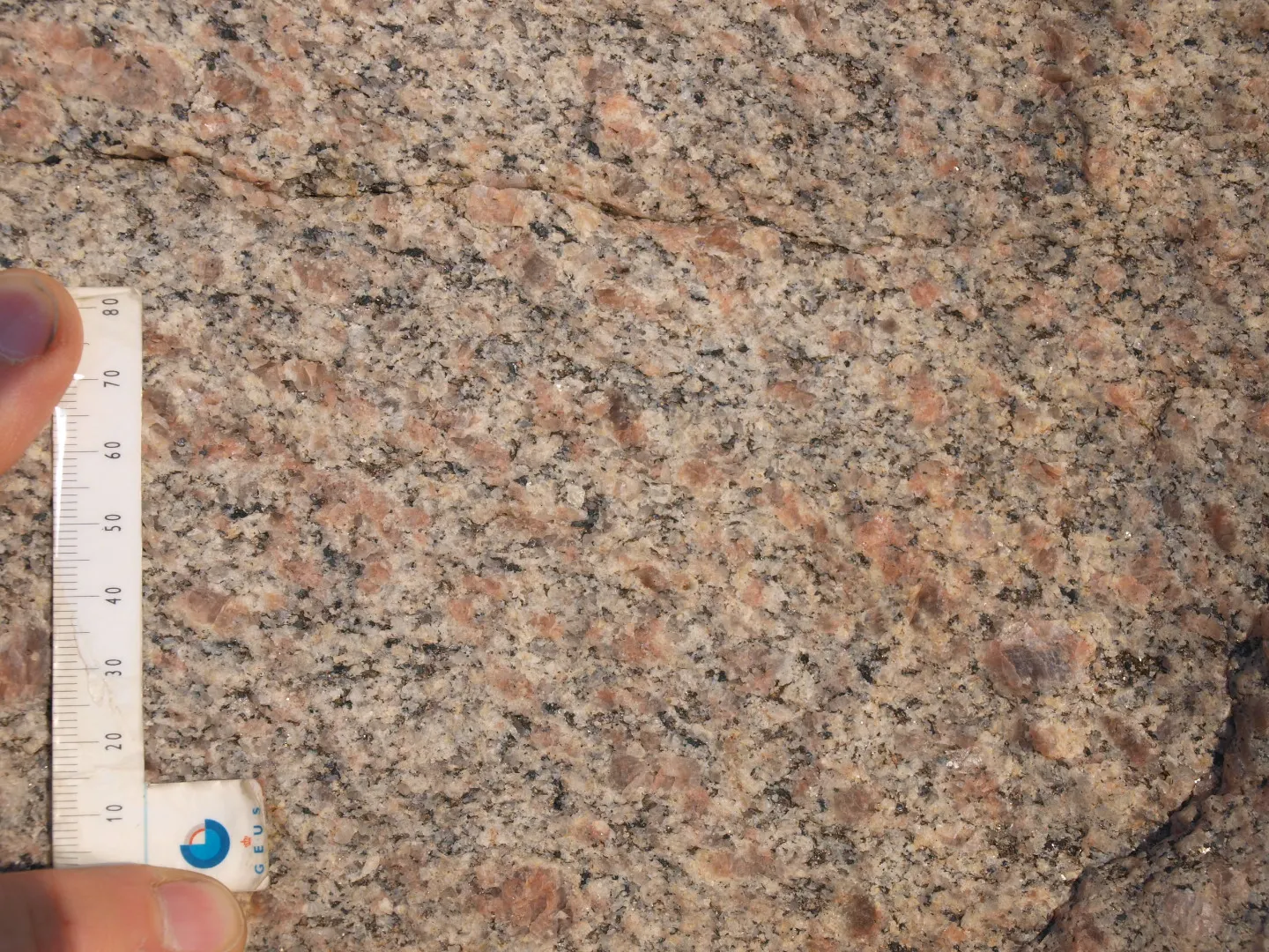 Mineralindholdet klassificerer bjergarten som en granit. Den antydede foliation tyder på, at granitten har været udsat for et tryk netop stærkt nok til at give nogle af mineralerne en fælles orientering. Bjergarten kan kaldes en svagt gnejsificeret granit eller en granitisk gnejs.
