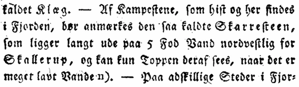 Provst og sognepræst Caspar Schade (1754-1828) skriver i sin ”Beskrivelse over Øen Mors” fra 1811, at Skarresten ligger ”langt ude i Fjorden på 5 Fod Vand nordvestlig for Skallerup. Toppen kan kun ses ved meget lavt Vande”. Stedbeskrivelsen passer præcis på vor tids Sælsten i Limfjorden. Om Skarresten fortæller Schade, at den blev kastet af en Thylands Kæmpe ved navn Skarre, men at stenen faldt i fjorden, fordi han ikke fik kraft nok på.