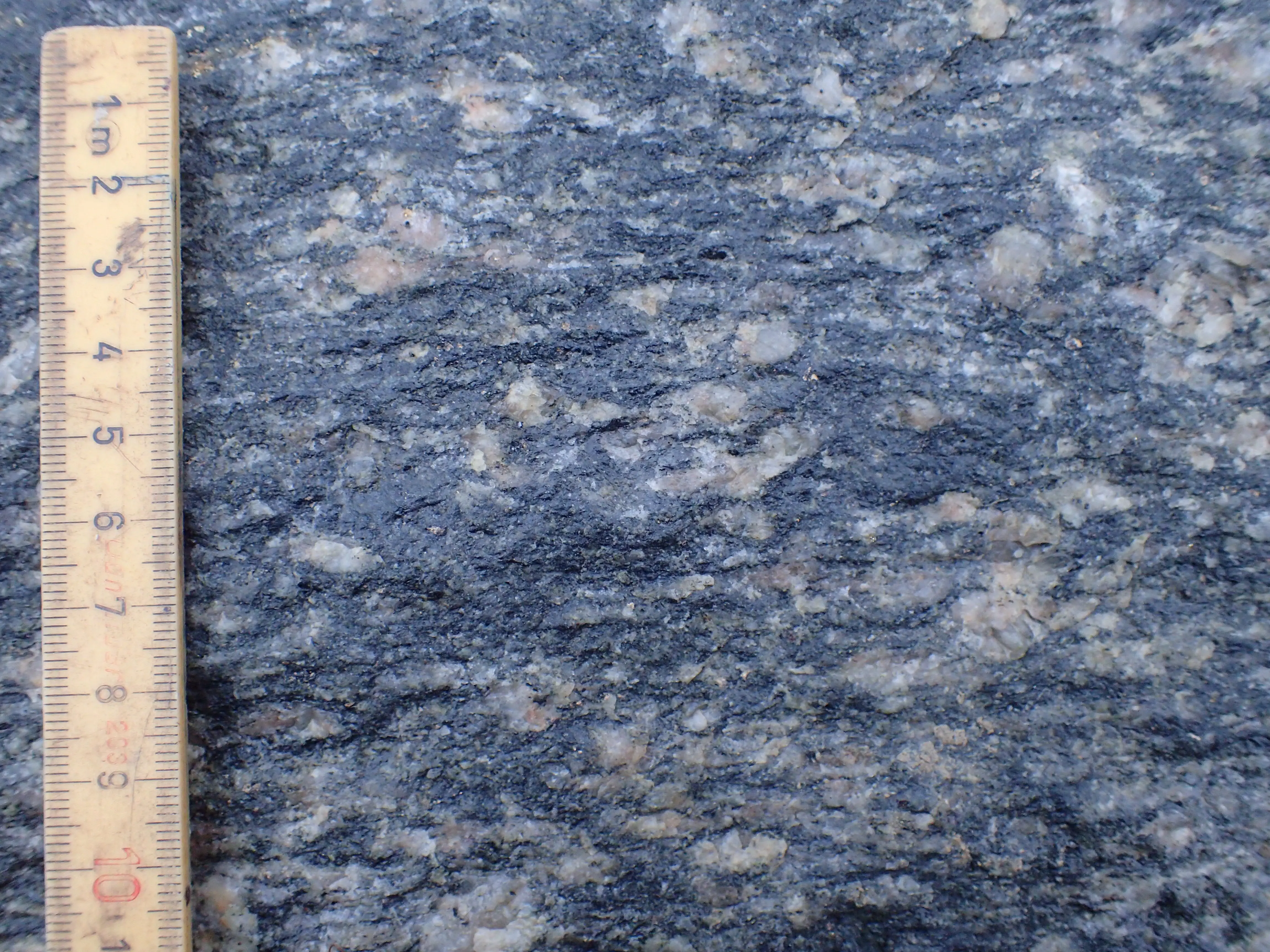 Øjegnejs kaldes bjergarten. Rødlige øjne af mineralet kalifeldspat svømmer mellem sorte og hvide striber af hhv. sort biotit, lys kvarts og sandsynligvis lys plagioklas. Dannelseshistorien for sådan en gnejs begyndte med et kilometerstort granitlegeme 15-20 km nede i undergrunden. Granitten var rig på mineralet biotit og porfyrisk med ekstrastore korn af kalifeldspat. Pladetektoniske bevægelser satte granitten under tryk, og mineralerne blev trukket, strukket, omdannet og omfordelt, så bjergarten blev stribet. De rødlige øjne af kalifeldspat gik fra kantet til aflangt øjeformet. Plademineralet biotit blev orienteret på tværs af trykpåvirkningen. Geologerne kaldet processen duktil (blød) deformation og overordnet metamorfose (omdannelse).