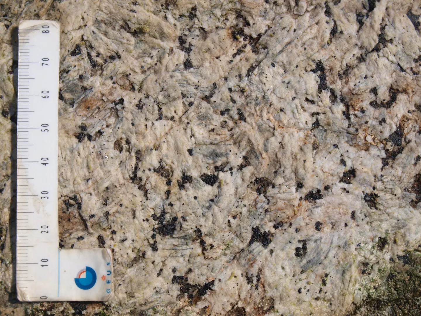 Fordelingen er omtrent 90% feldspat og 10% mørke mineraler. Bjergarten klassificeres som en larvikit, men den mangler larvikittens labradoriserende effekt, som betyder, at enkeltmineraler lyser op med et blåt skær ved forskelligt lysindfald. Larvikit, der være sig lys som mørk, klassificeres i den nyeste litteratur som bjergarten monzonit i den overordnede klassifikation af magmatiske bjergarter.