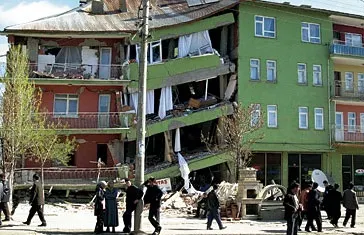 Jordskælv forårsager mange ødelæggelser på natur, mennesker og bygninger, og skaderne løber hvert år op i milliarder af kroner. Kilde: Polfoto/Sabit Cekin, AFP