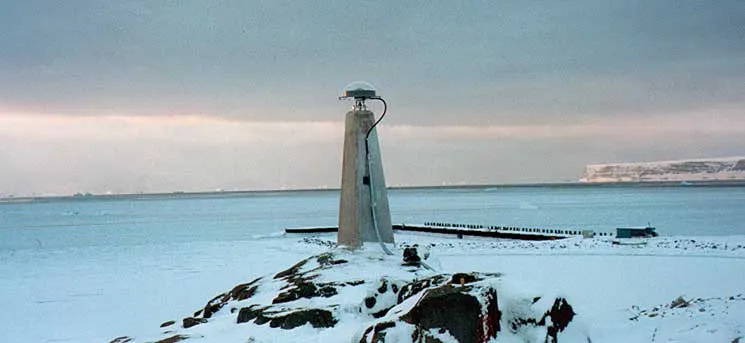 Den permanente GPS-station i Thule i det nordlige Grønland. Stationen hedder THU3. Stationen indgår i det globale net af permanente stationer, der fastlægger de pladetektoniske bevægelser. Kilde: B. Madsen, Danmarks Rumcenter