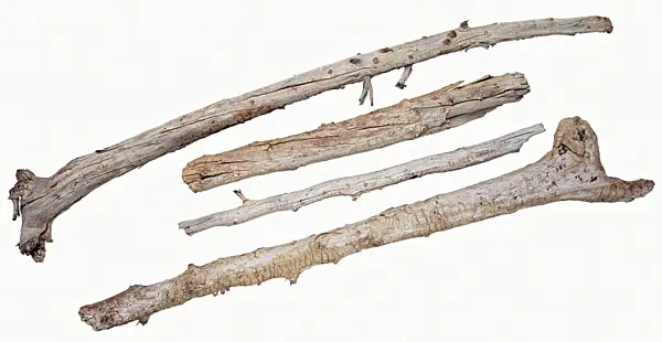 Ca. 2,4 mio. år gamle træstammer fra lærk og gran fra Washington Land i Nordvestgrønland. Den længste stamme er 176 cm lang og tyder på, at træerne var ret små. Stammerne er alle slidt glatte af flodtransport. Klik på billedet for stor udgave.