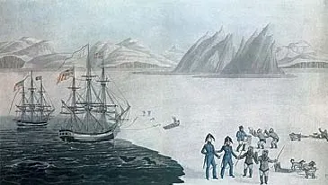 Inuit og europæere mødes. Kilde: J. Ross, 'A Voyage of Discovery', London, 1819
