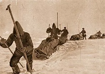 J.P Kochs ekspedition over Indlandsisen 1912-13. (Kilde: Horisonter af Is af Rud Kjems)