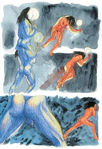Illustration: Naja Abelsen, scene fra kunst-tegneserien 'Solen og Månen', Milik Publishing, Nuuk